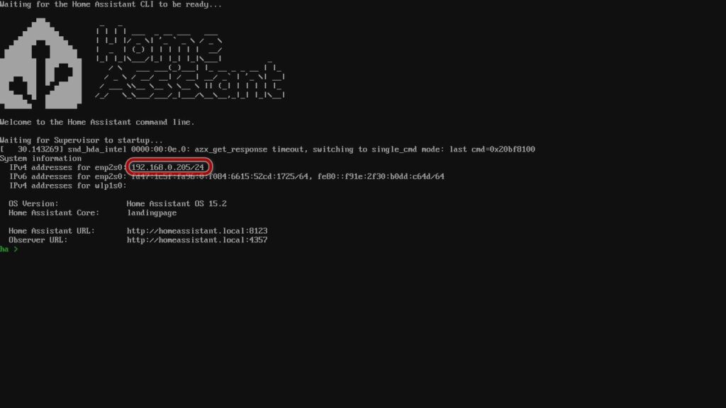 После перезагрузки система быстро запустится, а через пару минут сообщит свой IP-адрес.