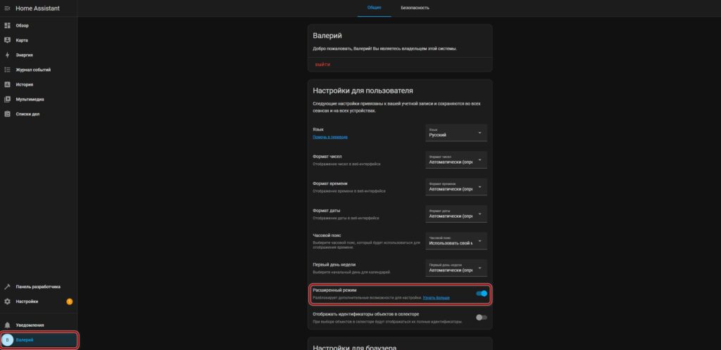 Первым делом отправляемся в “Профиль”. Здесь нас ждет маленькая, но очень полезная опция — “Расширенный режим”. Включаем её, и теперь система станет более функциональной, открывая перед нами дополнительные возможности. Как говорится, чем больше возможностей, тем веселее экспериментировать!